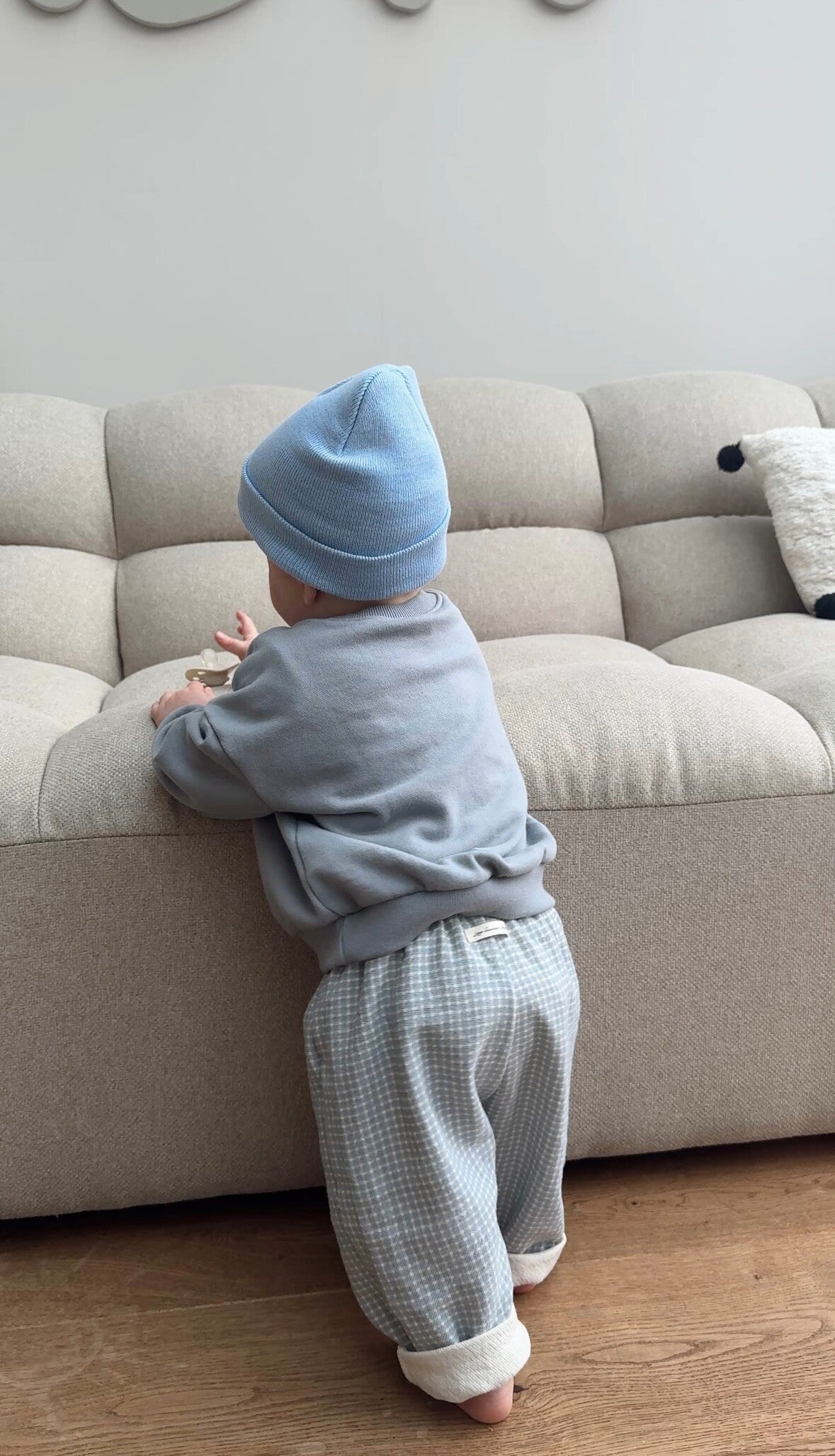 Jules is 14 maanden en draagt maat 1-2 jaar. Deze sweater valt op maat. Wil je hem extra oversized? Bestel dan een maat groter dan normaal.