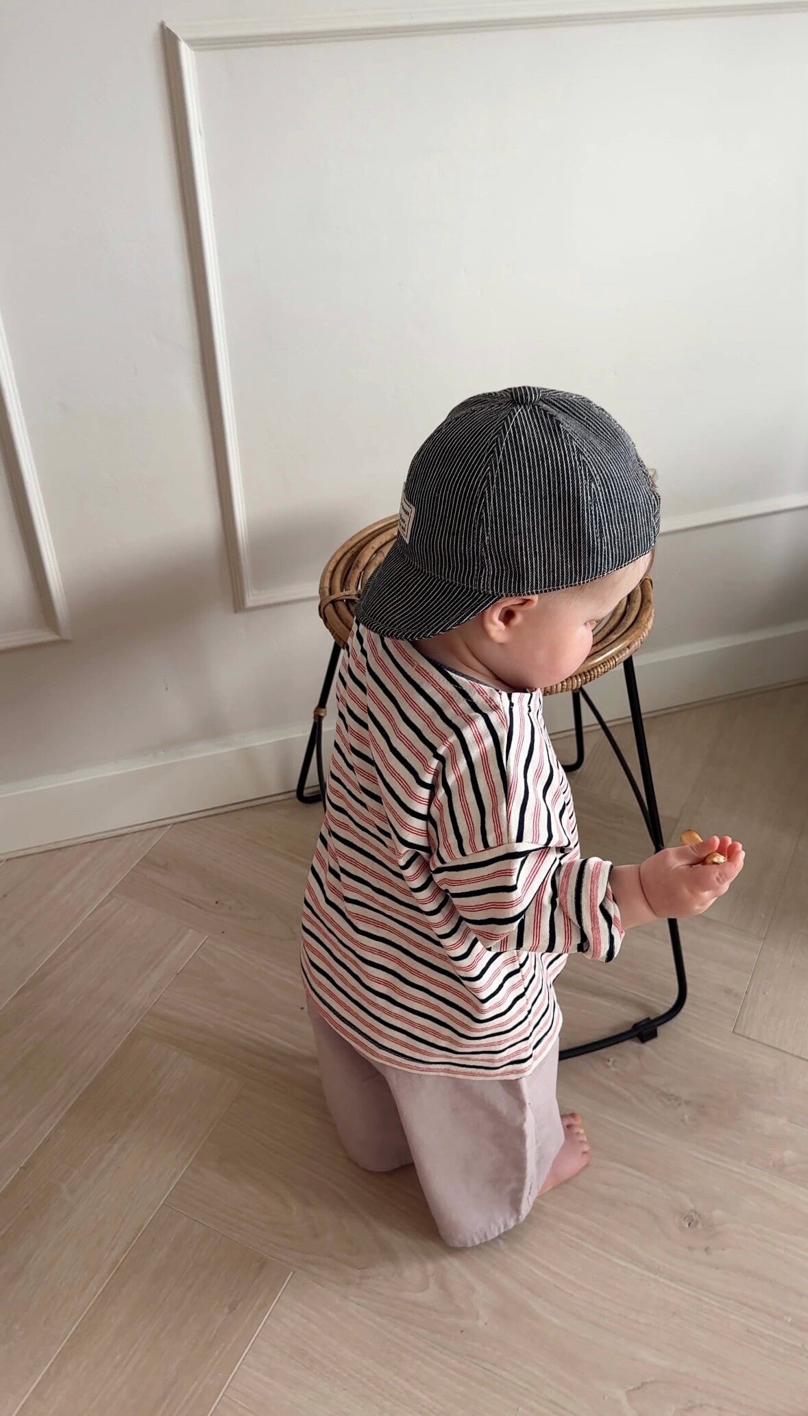 Jules is 14 maanden en draagt maat 80/86. Deze longsleeve valt al lekker baggy en oversized. Het is dus niet nodig om een maat groter te bestellen.