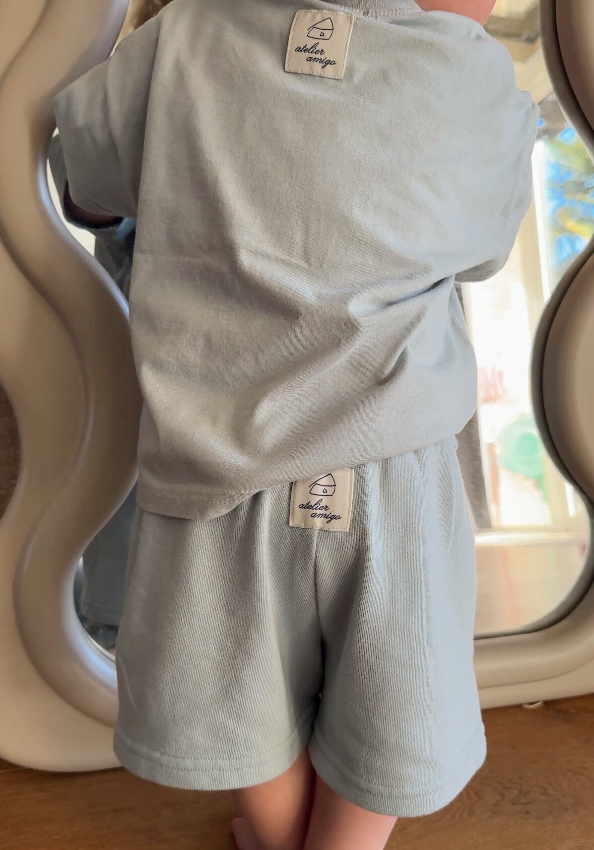 Het fijnste katoenen setje voor dit voorjaar en de zomer! Deze sky blue tint staat ieder kindje mooi en deze stof is zó ontzettend zacht! Dit broekje heeft een fijne elastische tailleband en een mooie oversized fit.